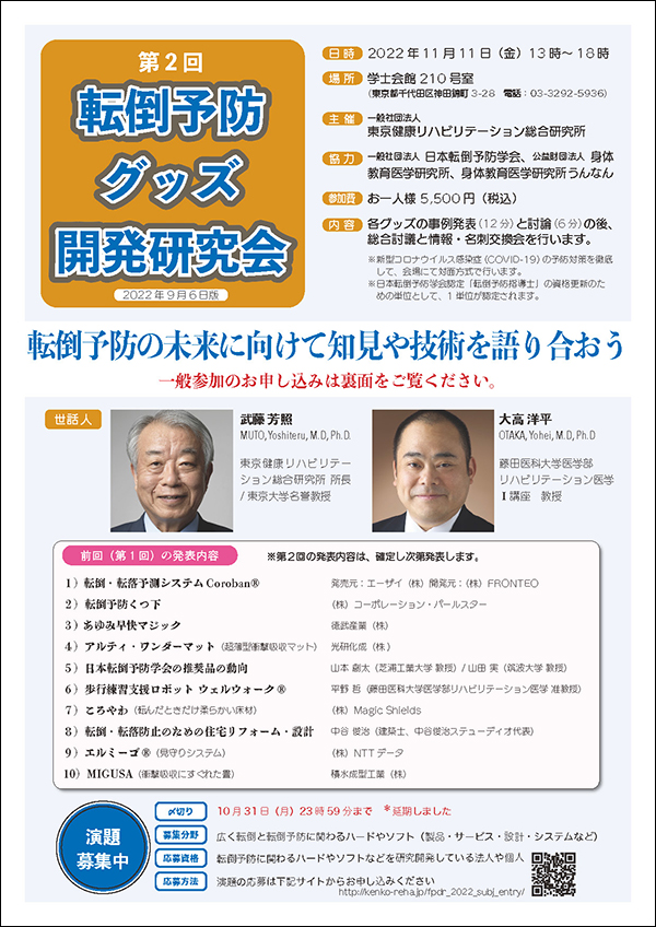 第2回 転倒予防グッズ開発研究会 演題/参加者募集中